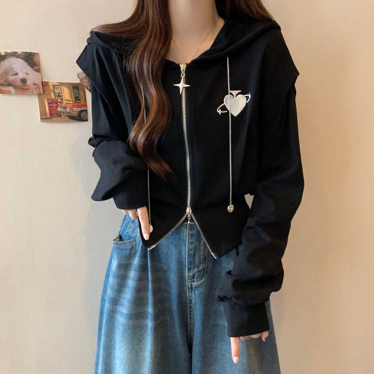 秋のストリートファッションに最適な黒ズボンは、ユニークなジッパーデザインがポイントです。