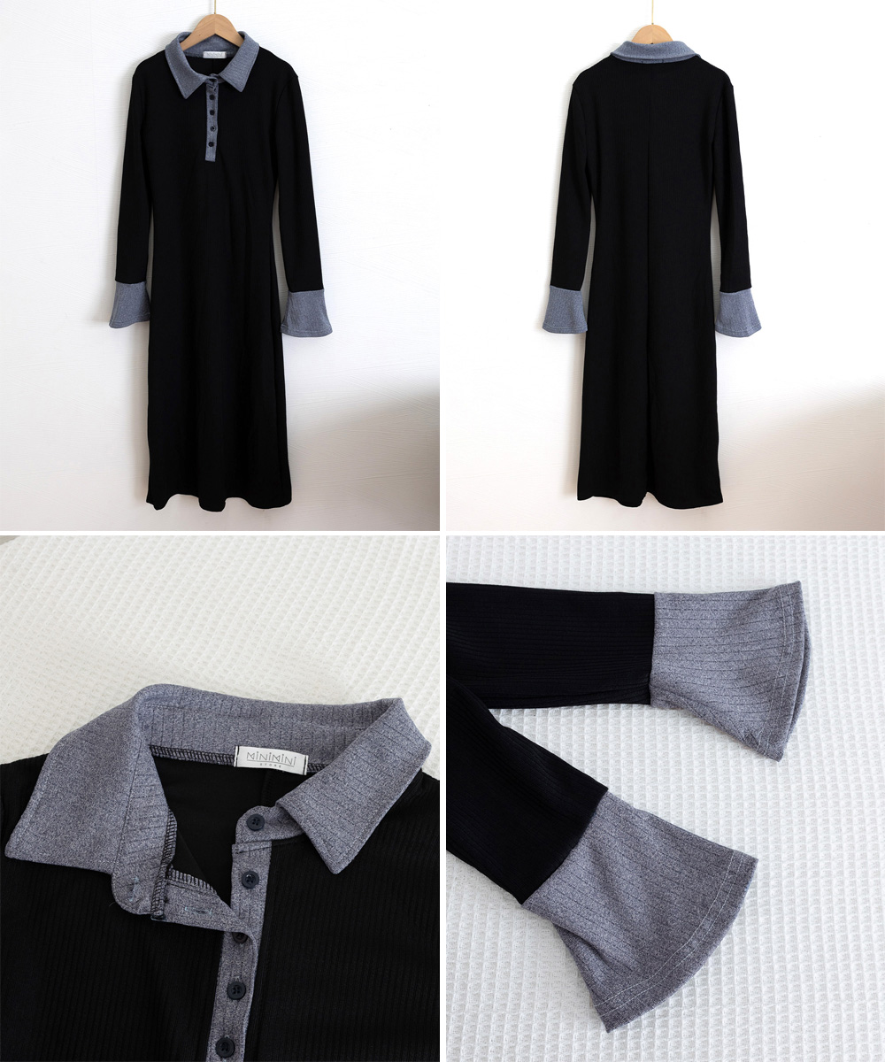 黒コーデの主役になる配色デザインが魅力のリブニットワンピース。