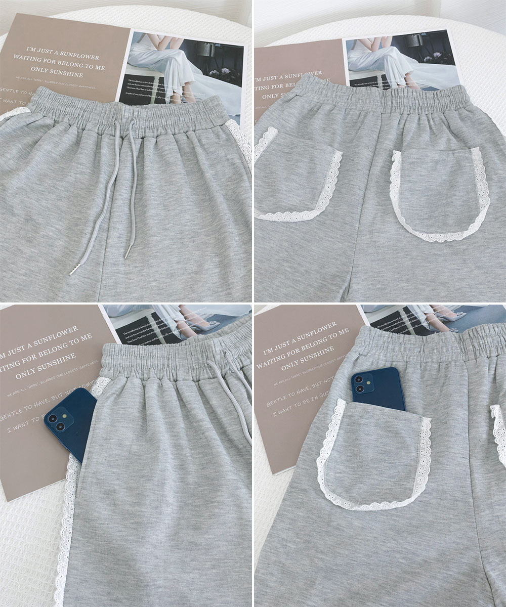 サイドの白レース装飾がカジュアルスタイルに女性らしいアクセントをプラス。