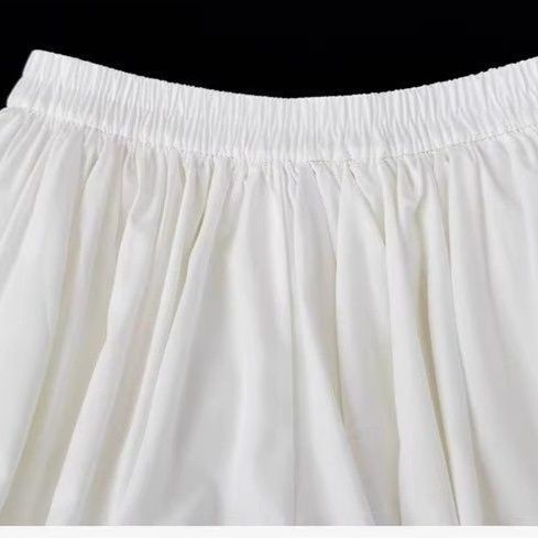 裾に向かってふんわりと丸く膨らむ立体的なシルエットが特徴で、動くたびに揺れる軽やかな素材感が魅力的です。
