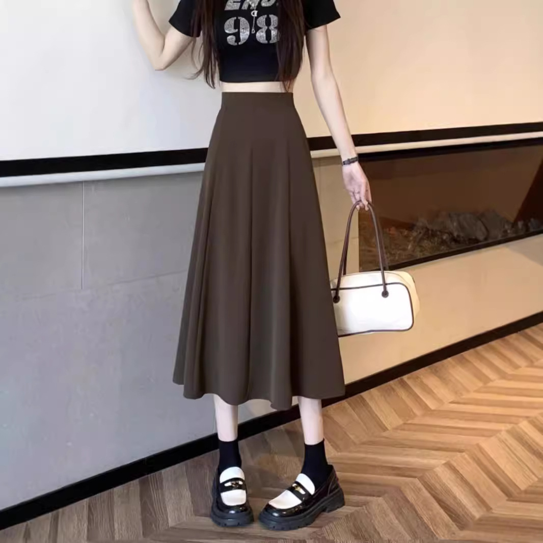 裾に向かってふんわりと広がるシルエットが女性らしさを演出し、ミディ丈で品よくまとまります。