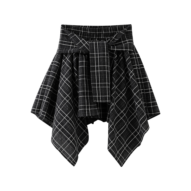 黒コーデに映える格子柄が印象的なスカートです。