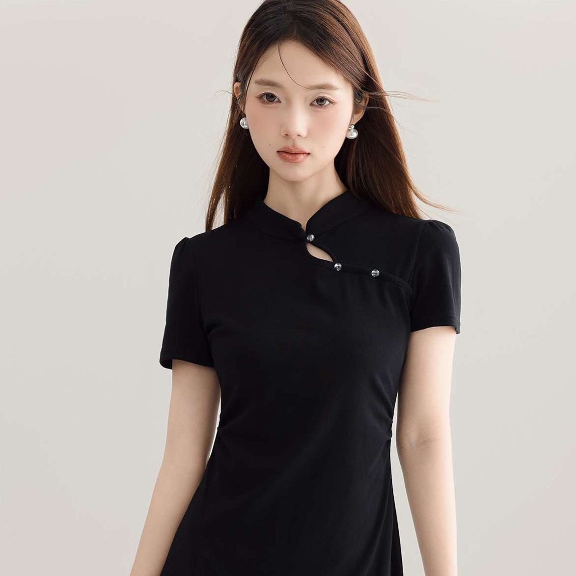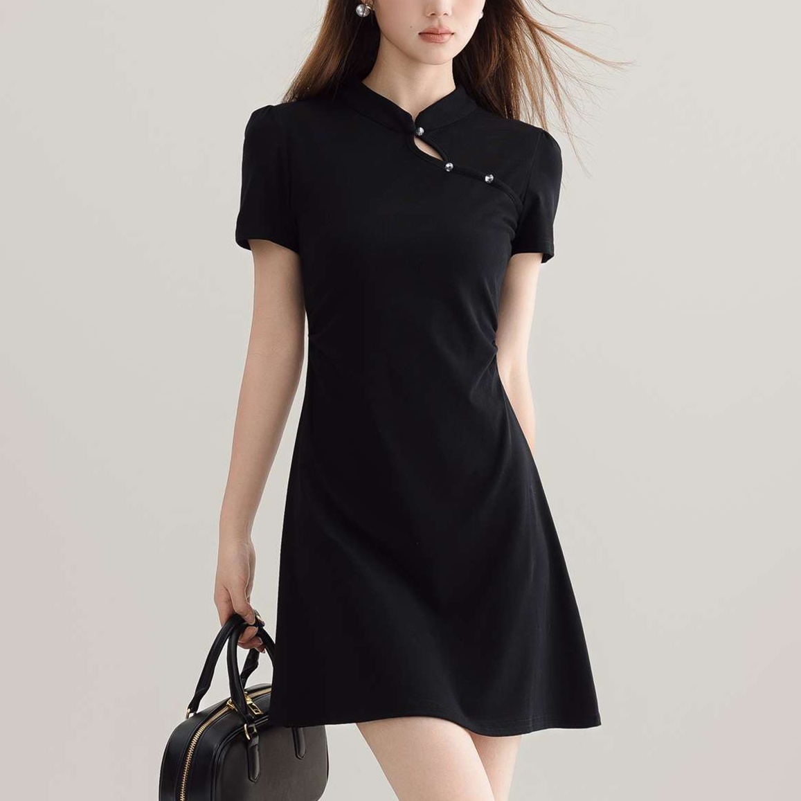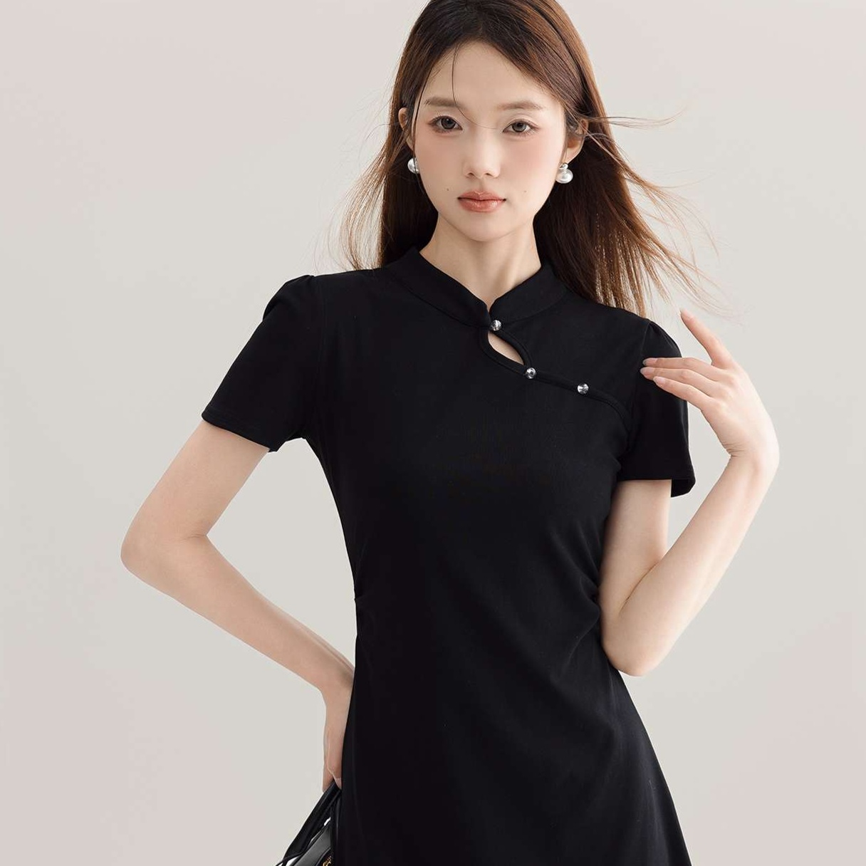 洗練されたモダンな黒のチャイナカラーワンピース。シンプルな中にも個性的な装飾ボタンが華やかさをプラスし、スタイリッシュな黒コーデを完成させる一着。デイリーから特別な日まで、さまざまなシーンで活躍する着回し力抜群のアイテム。シルエットも美しく、どんな体型にもフィットします。黒の魅力を引き立てるワンピースで、洗練された大人の女性を演出。